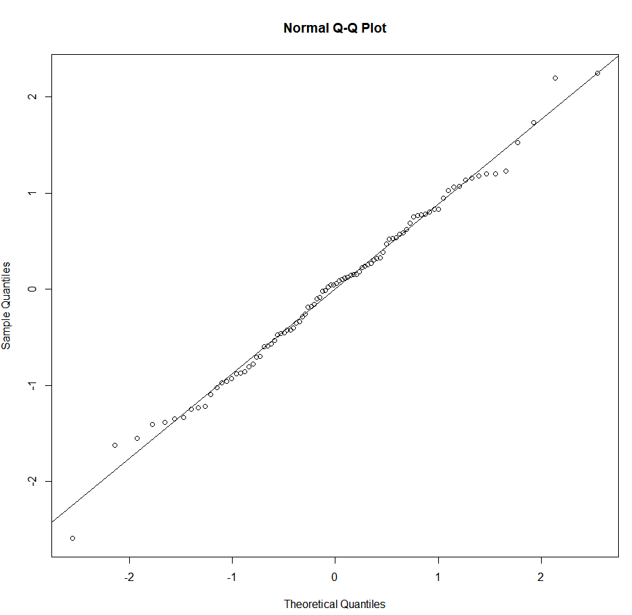 이론적 배경은 생략하겠다. 모델$residuals 로 잔차 데이터를 추출하고, 이를 qqline()으로 plot했을 때 선형성이 잘 나타나면 잔차가 정규성을 나타내는 것이다.