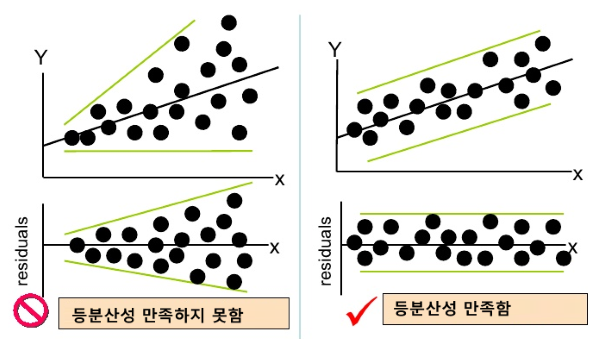 4. 등분산성: 잔차(residual)는 등분산이어야 한다.